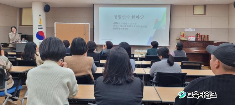 [±³À°Å¸ÀÓÁî/ÃæºÏ±³À°] ¹Úö¿ì ±âÀÚ = ÃæÃ»ºÏµµÁß¿ø±³À°¹®È¿ø(¿øÀå ÇÑÁÖÇü)Àº 5ÀÏ(¿ù) º»°ü 2Ãþ ȸÀǽǿ¡¼ ¼³¸íÀýÀ» ¸ÂÀÌÇÏ¿© ºÎÆÐ¹æÁö ¹× Á¶Á÷¹®È °³¼±°ú Áñ°Å¿î Á÷Àå ºÐÀ§±â Á¶¼ºÀ» À§ÇØ Ã»·Å¿¬¼ö ÇѸ¶´ç Çà»ç¸¦ °³ÃÖÇß´Ù.