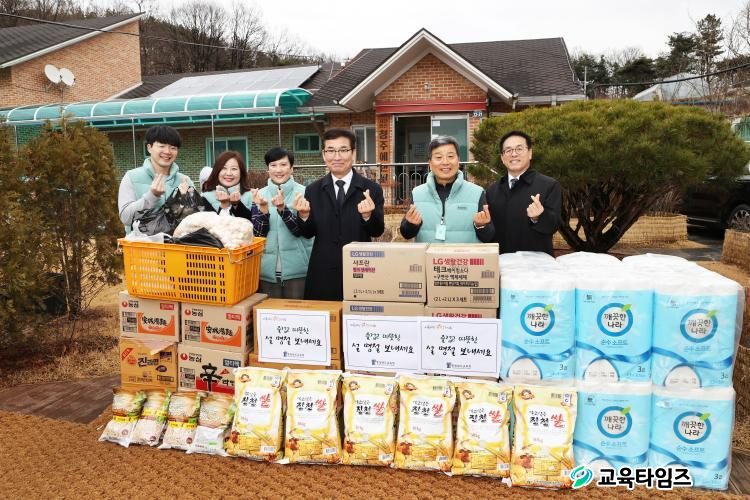 | À±°Ç¿µ ÃæÃ»ºÏµµ±³À°°¨ÀÌ 5ÀÏ ¼³ ¸íÀýÀ» ¸Â¾Æ »çȸº¹Áö½Ã¼³ÀΠûÁֽà ¿¡µ§¿øÀ» ¹æ¹®ÇØ À§¹®Ç°À» Àü´ÞÇÑ ÈÄ ±â³äÃÔ¿µÀ» Çϰí ÀÖ´Ù [»çÁøÁ¦°ø=ÃæºÏ±³À°Ã»] |