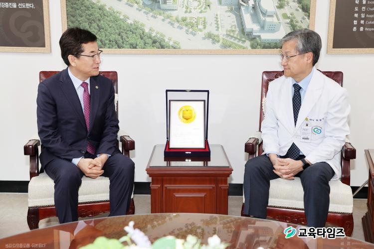 [±³À°Å¸ÀÓÁî/ÃæºÏ±³À°] ¹Úö¿ì ±âÀÚ = À±°Ç¿µ ÃæÃ»ºÏµµ±³À°°¨ÀÌ Áö³ 29ÀÏ(¸ñ), ½ÅÇб⠴ëºñ Çлý ÀÀ±Þ»óȲ ¹ß»ý ½Ã Áø·á Áö¿ø ¿äûÀ» À§ÇØ ÃæºÏ´ëÇб³º´¿ø(¿øÀå ÃÖ¿µ¼®)À» ¹æ¹®Çß´Ù.
