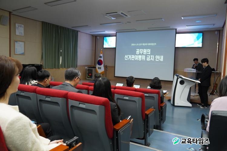 [±³À°Å¸ÀÓÁî/Ãæ³²±³À°] ÃÖ¿ë°ü ±âÀÚ = ¿¹»ê±³À°Áö¿øÃ»(±³À°Àå ±èÁ¾ÇÏ)Àº 4ÀÏ °ø°¨½Ç¿¡¼ ±³À°Áö¿øÃ» ¼Ò¼Ó Á÷¿ø 80¿©¸íÀ» ´ë»óÀ¸·Î Á¦22´ë ±¹È¸ÀÇ¿ø¼±°Å °ü·Ã ±³À°À» ½Ç½ÃÇß´Ù.