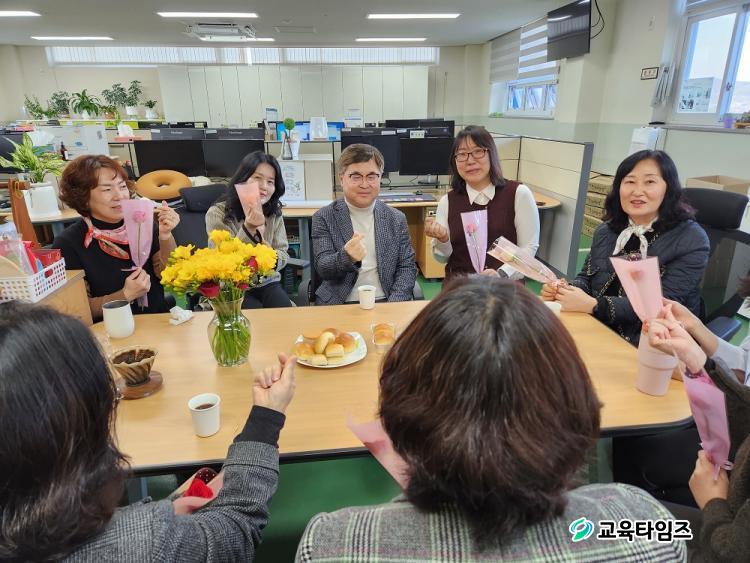 ÀÌ ³¯ ¿ÀÀü ±èÁ¾ÇÏ ±³À°ÀåÀº °¢ °ú »ç¹«½ÇÀ» ¹æ¹®ÇÏ¿© Á÷¿øµéÀ» °Ý·ÁÇÏ¸ç ¿©¼ºÀÇ ³¯À» »ó¡ÇÏ´Â Àå¹Ì²ÉÀ» Àü´ÞÇß´Ù.