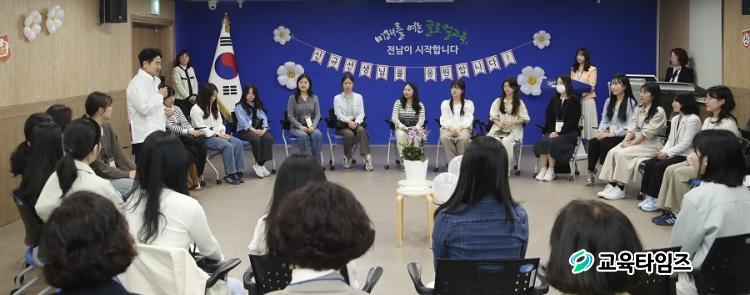 ±è´ëÁß ±³À°°¨ÀÌ À¯Ä¡¿ø ½Å±Ô±³»çµé¿¡°Ô °Ý·ÁÀÇ ¸»À» ÀüÇϰí ÀÖ´Ù. [»çÁøÁ¦°ø=Àü³²±³À°Ã»]