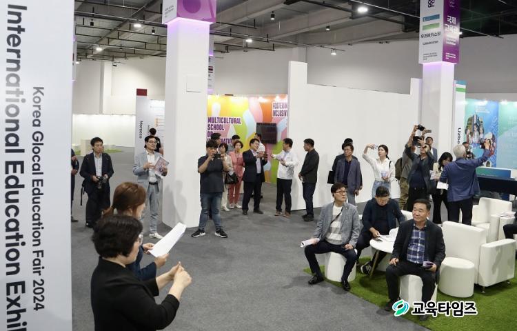 Áö³ 27ÀÏ ÁøÇàµÈ ÇÁ·¹½ºÅõ¾î¿¡¼ ¾ð·ÐÀεéÀÌ ±¹Á¦±³À°°ü°ú °ü·ÃÇÑ °ü°èÀÚµéÀÇ ¼³¸íÀ» µè°í ÀÖ´Ù. [»çÁøÁ¦°ø=Àü³²±³À°Ã»]
