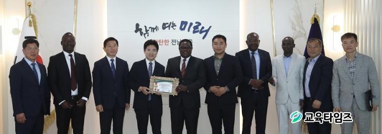 ÄÉ³Ä ºØ°í¸¶ Ä«¿îƼ ·ç»çÄ« Äɳ׽º ¸¶ÄÌ·Î(Lusaka kenneth makelo) ÁÖÁö»ç¿Í ºØ°í¸¶ÁÖ ´ÏÄÝ¶ó½º Á¦ÀÌÆ¼ Űº¸ÀÌ(Nicholas JT kiboi) ±³À°Ã»ÀåÀÌ 5ÀÏ Àü¶ó³²µµ±³À°Ã»À» ¹æ¹®, Çлý¿ë ÀçȰ¿ë Ã¥°É»óÀ» Áö¿øÇØ ÁØ °Í¿¡ ´ëÇØ °í¸¶¿òÀ» ´ãÀº °¨»çÆÐ¸¦ Àü´ÞÇß´Ù.