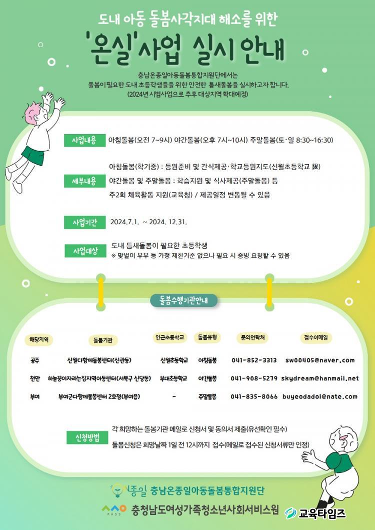 Áö¿ø´ÜÀº 7¿ùºÎÅÍ °øÁÖ(¾ÆÄ§)・ºÎ¿©(ÁÖ¸»)・õ¾È(¾ß°£)ÀÇ °¢ µ¹º½±â°ü 1°÷ÀÌ ½Ã¹ü»ç¾÷À¸·Î ¾Æµ¿µ¹º½»ç°¢Áö´ë Áö¿ø»ç¾÷(¿Â½Ç»ç¾÷)À» ¼öÇàÇÏ¸ç Æ´»õµ¹º½ÀÌ ÇÊ¿äÇÑ ÃʵîÇлýÀÌ ÀÌ¿ëÇÒ ¼ö ÀÖ´Ù. 2Çб⿡´Â Çб³ ³» ¾ÆÄ§µ¹º½ ½Ã¹ü»ç¾÷À» ÃßÁøÇÒ °èȹÀÌ´Ù. ¶ÇÇÑ, ¾Æµ¿µ¹º½±â°ü Áö¿øÀ» À§ÇØ 5¿ùÀº ¾Æµ¿µ¹º½Á¾»çÀÚ ¿ª·®°È±³À°, 6¿ùºÎÅÍ´Â Ãæ³²Çü ¿ÂÁ¾Àϸ¶À»¹æ°úÈĵ¹º½ ¼öÇà±â°ü(20°³¼Ò) ÄÁ¼³ÆÃ, µ¹º½ÄÁ¼³ÅÏÆ® ¾ç¼º°úÁ¤À» ÁøÇàÇÏ¿´´Ù. 7¿ùºÎÅÍ ÄÁ¼³ÅÏÆ®¸¦ ¾Æµ¿µ¹º½±â°ü¿¡ ÆÄ°ßÇÏ¿© ¸ÂÃãÇü 1:1 ÄÁ¼³ÆÃ ¹× »ó½Ã ¸àÅ丵À» Áö¿øÇÒ ¿¹Á¤ÀÌ´Ù. ÇÑÆí, Áö¿ø´Ü ÀÌ»óÁø´ÜÀåÀº ¡°°øÀûµ¹º½¼ºñ½ºÀÇ »ç°¢Áö´ë¸¦ ¹ß±¼ÇÏ°í ´ë¾ÈÀ» ¸¶·ÃÇϸç Çкθ𰡠ÇÊ¿äÇÑ µ¹º½Á¤º¸¸¦ ½Å¼ÓÇÏ°Ô Á¦°ø¹ÞÀ» ¼ö ÀÖ´Â Èû½ëÃæ³² Ãʵº½ Ç÷§Æû °³¹ß¿¡ ¹ÚÂ÷¸¦ °¡Çϰڴ١±°í ¸»ÇßÀ¸¸ç ¡°´õºÒ¾î µ¹º½±â°ü Á¾»çÀÚ ÄÁ¼³ÅÏÆ® ¾ç¼ºÀ¸·Î µ¹º½±â°ü ¿î¿µ¿¡ Çö½ÇÀûÀÎ µµ¿òÀ» ÁÙ ¼ö ÀÖµµ·Ï Çϰڴ١±°í ¸»Çß´Ù.