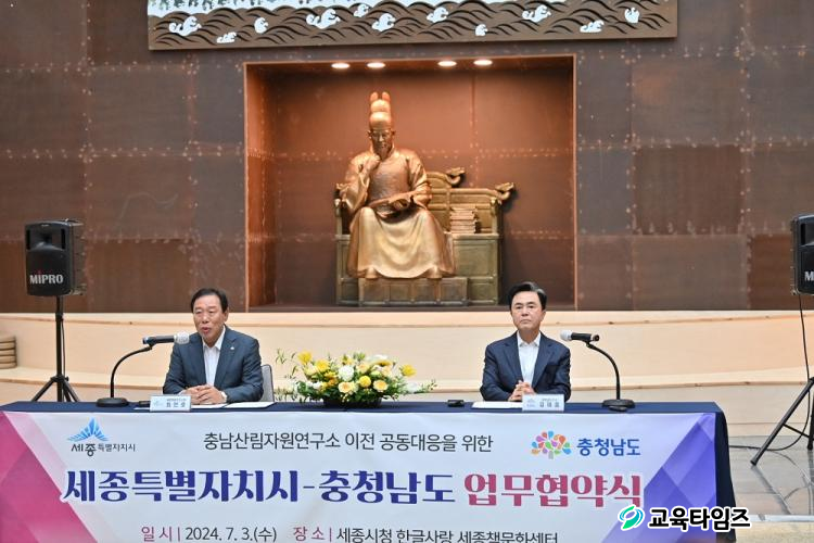 ±èÅÂÈì Áö»ç´Â 3ÀÏ ¼¼Á¾½Ãû¿¡¼ ÃÖ¹ÎÈ£ ½ÃÀå°ú ¡®Ãæ³²»ê¸²ÀÚ¿ø¿¬±¸¼Ò ÀÌÀü °øµ¿ ´ëÀÀÀ» À§ÇÑ ¾÷¹«Çù¾à¡¯À» ü°áÇß´Ù.
