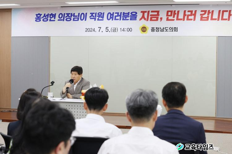 | ÀÇȸ»ç¹«Ã³ Á÷¿ø°úÀÇ ´ëÈ-È«¼ºÇö ÀÇÀå´ÔÀÌ Á÷¿ø¿©·¯ºÐÀ» Áö±Ý, ¸¸³ª·¯ °©´Ï´Ù! /»çÁø=Ãæ³²µµÀÇȸ Á¦°ø |
