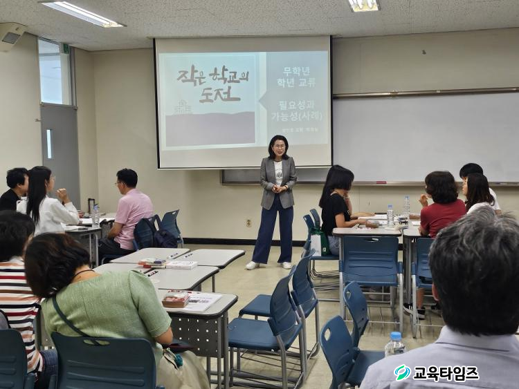Á¤Àº¿µ ±³À°Çõ½Å°úÀåÀº ¡°À̹ø ¿¬¼ö°¡ ÀÛÀºÇб³ ±³¿øÀÇ ¹®È¿¹¼úÁöµµ ¿ª·®À» °ÈÇϰí, ±³À°°úÁ¤°ú Çлý »ýȰ±³À° Àü¹®¼ºÀ» Çâ»óÇϴµ¥ µµ¿òÀÌ µÇ±â¸¦ ¹Ù¶õ´Ù¡±¶ó¸ç, ¡°ÀÛÀºÇб³ÀÇ Æ¯¼º¿¡ ¸Â´Â ¸ÂÃãÇü ±³À°°úÁ¤À» ¿î¿µÇØ ÁÙ °Í¡±À» ´çºÎÇß´Ù.
