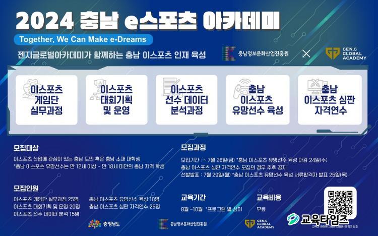 [±³À°Å¸ÀÓÁî/»çȸ] °¡µÎÈ£ ±âÀÚ = Ãæ³²Á¤º¸¹®È»ê¾÷ÁøÈï¿ø(¿øÀå ±è°î¹Ì, ÀÌÇÏ ÁøÈï¿ø)ÀÌ À̽ºÆ÷Ã÷ »ê¾÷¿¡ °ü½ÉÀÌ ÀÖ´Â Ãæ³²µµ¹Î°ú Ãæ³² ¼ÒÀç ´ëÇлýµéÀ» À§ÇÑ '2024 Ãæ³² e½ºÆ÷Ã÷ ¾ÆÄ«µ¥¹Ì' ±³À°»ý ¸ðÁýÀ» 7¿ù 12ÀÏ(±Ý)ºÎÅÍ ½ÃÀÛÇÑ´Ù.
