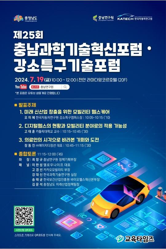 ÃæÃ»³²µµ°¡ ÁÖÃÖÇϰí Ãæ³²¿¬±¸¿ø°ú Çѱ¹ÀÚµ¿Â÷¿¬±¸¿øÀÌ °øµ¿ ÁÖ°üÇÑ À̹ø Æ÷·³Àº ¸ðºô¸®Æ¼ ÇコÄɾîÀÇ Ãֽбâ¼ú µ¿Çâ °øÀ¯ ¹× »óÈ£ Çù·Â µî Ãæ³²µµ ¹Ì·¡ ½Å»ê¾÷ âÃâÀ» À§ÇØ ÀÚµ¿Â÷¡¤ÀǷᡤÇコÄÉ¾î ºÐ¾ß »ê¡¤ÇС¤¿¬¡¤°ü Àü¹®°¡µéÀÌ ÇÑÀÚ¸®¿¡ ¸ð¿´´Ù.