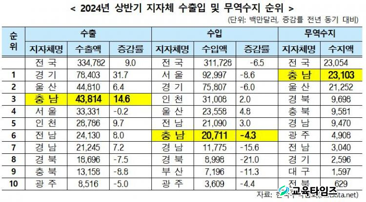 | 2024³â »ó¹Ý±â ÁöÀÚü ¼öÃâÀÔ ¹× ¹«¿ª¼öÁö ¼øÀ§ /»çÁø=Ãæ³²µµ Á¦°ø |