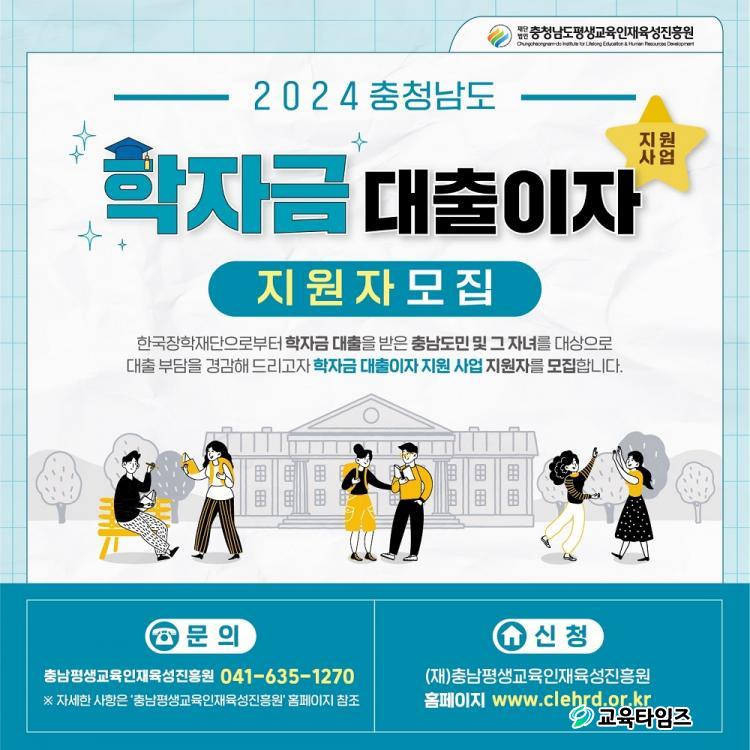 [±³À°Å¸ÀÓÁî/»çȸ] °¡µÎÈ£ ±âÀÚ = (Àç)Ãæ³²Æò»ý±³À°ÀÎÀçÀ°¼ºÁøÈï¿ø(ÀÌ»çÀå ±èÅÂÈì, ÀÌÇÏ ÁøÈï¿ø)Àº º»ÀÎ ¶Ç´Â ºÎ¸ð°¡ ÃæÃ»³²µµ¿¡ 1³â ÀÌ»ó °è¼Ó °ÅÁÖÇϰí ÀÖ´Â Ãæ³²µµ¹Î ¹× ±× Àڳฦ ´ë»óÀ¸·Î 2024³â ÇÐÀÚ±Ý ´ëÃâÀÌÀÚ Áö¿ø»ç¾÷À» ½Ç½ÃÇÑ´Ù.