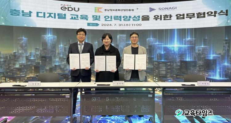 [±³À°Å¸ÀÓÁî/»çȸ] °¡µÎÈ£ ±âÀÚ = Ãæ³²Á¤º¸¹®È»ê¾÷ÁøÈï¿ø(¿øÀå ±è°î¹Ì)Àº 7¿ù 31ÀÏ ¿¡µàÅ×Å© ±â¾÷ NHN¿¡µà(´ëÇ¥ °¿ëÇõ)¡¤¼Ò³ª±â Ä¿¹Â´ÏÄÉÀ̼Ç(´ëÇ¥ ¾îÀ±¼ö)°ú Ãæ³² µðÁöÅÐ ±³À° ¹× Àη ¾ç¼ºÀ» À§ÇÑ ¾÷¹«Çù¾à(MOU)À» ü°áÇß´Ù°í ¹àÇû´Ù. ü°á½ÄÀº Ãæ³²ÄÜÅÙÃ÷±â¾÷ÁøÈïÁö¿ø¼¾ÅÍ 1Ãþ XR ½ºÅ×ÀÌÁö¿¡¼ ¿·ÈÀ¸¸ç, ±è°î¹Ì ¿øÀåÀ» ºñ·Ô NHN¿¡µà ÀÌÀå¿ø ÃÖ°íÀü·«Ã¥ÀÓÀÚ(CSO)¿Í ¼Ò³ª±â Ä¿¹Â´ÏÄÉÀÌ¼Ç ¾îÀ±¼ö ´ëÇ¥°¡ Âü¼®ÇÑ °¡¿îµ¥ ÀÌ·ïÁ³´Ù.