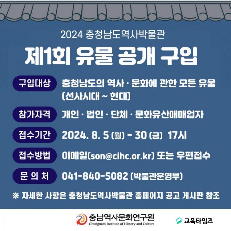 [±³À°Å¸ÀÓÁî/»çȸ] °¡µÎÈ£ ±âÀÚ = Ãæ³²¿ª»ç¹®È¿¬±¸¿ø(¿øÀå ±è³«Áß) »êÇÏ Ãæ³²¿ª»ç¹Ú¹°°üÀº ¸ê½Ç¡¤¹ÝÃâµÇ´Â Ãæ³² ¹®ÈÀ¯»êÀÇ º¸Á¸°ú Ȱ¿ëÀ» À§ÇØ À¯¹° °ø°³ ±¸ÀÔÀ» ÁøÇàÇÑ´Ù. À̹ø À¯¹° °ø°³ ±¸ÀÔÀÇ ¸Åµµ Á¢¼ö ±â°£Àº 8¿ù 30ÀϱîÁöÀ̸ç, ¼±»ç½Ã´ëºÎÅÍ Çö´ë¿¡ À̸£±â±îÁö Ãæ³² Áö¿ªÀÇ ¿ª»ç¿Í ¹®È¿¡ °üÇÑ ¸ðµç À¯¹°À» ´ë»óÀ¸·Î ÇÑ´Ù.