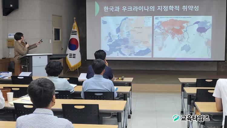 À̹ø ±³À°Àº ¿ìÅ©¶óÀ̳ª Ãâ½Å ¾Ë¸®³ª ½¬¸¸½ºÄ« ¼¿ï´ëÇб³ ¿Ü±³ÇÐ ¹Ú»ç¸¦ ÃÊûÇÏ¿© ¡®¿ìÅ©¶óÀ̳ª ÀüÀï°ú ¼¼°èÁú¼¡¯¶õ ÁÖÁ¦·Î ÇöÀç ¿ìÅ©¶óÀ̳ª-·¯½Ã¾Æ ÀüÀï ½Ç»ó¿¡ ´ëÇÑ ÇöÀå°¨ÀÖ´Â °Àǰ¡ ÁøÇàµÇ¾úÀ¸¸ç, ÀÌ¿¡ Á÷¿øµéÀº ±¹°¡¾Èº¸ÀÇ Á߿伺 ÀÎ½Ä ¹× °øÁ÷Àڷμ È®°íÇÑ ¾Èº¸ÀǽÄÀ» ÀçÈ®¸³ÇÏ´Â °è±â°¡ µÇ¾ú´Ù.