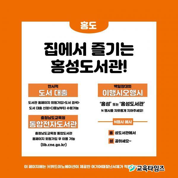 ±âŸ ÀÚ¼¼ÇÑ »çÇ×Àº µµ¼°ü ȨÆäÀÌÁö(hslib.cne.go.kr)³ª ÀνºÅ¸±×·¥(@hongseonglibrary) ¶Ç´Â ÀüÈ(¢Ï632-2860, 631-7506)·Î ¹®ÀÇÇϸé ÀÚ¼¼È÷ ¾È³»¹ÞÀ» ¼ö ÀÖ´Ù.