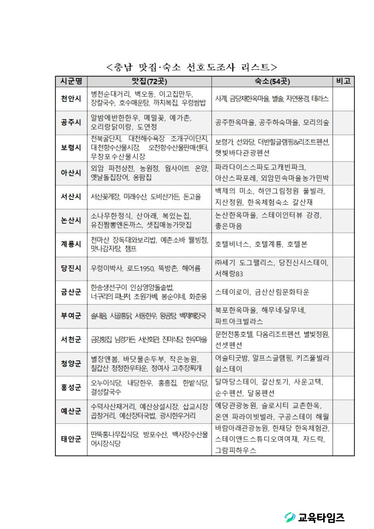 À̹ø Á¶»ç´Â ¡®2025-2026 Ãæ³² ¹æ¹®ÀÇ ÇØ¡¯¸¦ ¾ÕµÎ°í, ¸ÀÁý 72°÷°ú ¼÷¼Ò 54°÷¿¡ ´ëÇÑ °ü±¤°´µéÀÇ ¼±È£µµ¸¦ ÆÄ¾ÇÇϱâ À§ÇÑ ¸ñÀûÀ¸·Î ÁøÇàÇÑ´Ù.