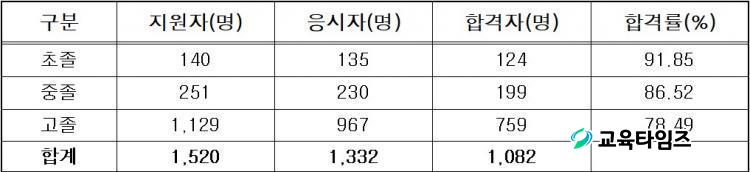 2024³â Á¦2ȸ °ËÁ¤°í½Ã¿¡´Â 1,332¸íÀÌ ÀÀ½ÃÇØ ÃÑ 1,082¸íÀÌ ÇÕ°ÝÇÏ¿´À¸¸ç, ÃÊÁ¹Àº 91.85%, ÁßÁ¹Àº 86.52%, °íÁ¹Àº 78.49%ÀÇ ÇÕ°Ý·üÀ» º¸¿´´Ù.