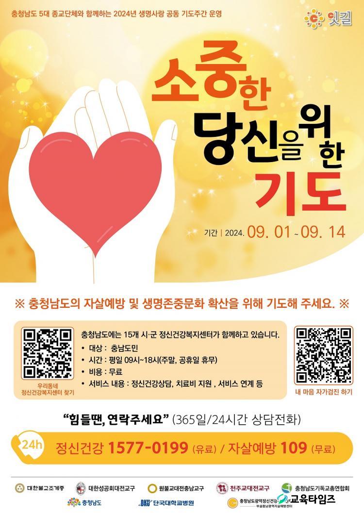 [±³À°Å¸ÀÓÁî/Ãæ³²] °¡µÎÈ£ ±âÀÚ = Ãæ³²µµ´Â ¿À´Â 9¿ù ¼¼°è Àڻ쿹¹æÀÇ ³¯(9.10.)À» ¸ÂÀÌÇÏ¿© ¡°¼ÒÁßÇÑ ´ç½ÅÀ» À§ÇÑ ±âµµ¡±¶ó´Â ½½·Î°ÇÀ» ³»°É°í µµ³» 5´ë Á¾±³´Üü¿Í ÇÔ²² »ý¸í»ç¶û °øµ¿ ±âµµÁÖ°£À» ¿î¿µÇÑ´Ù.