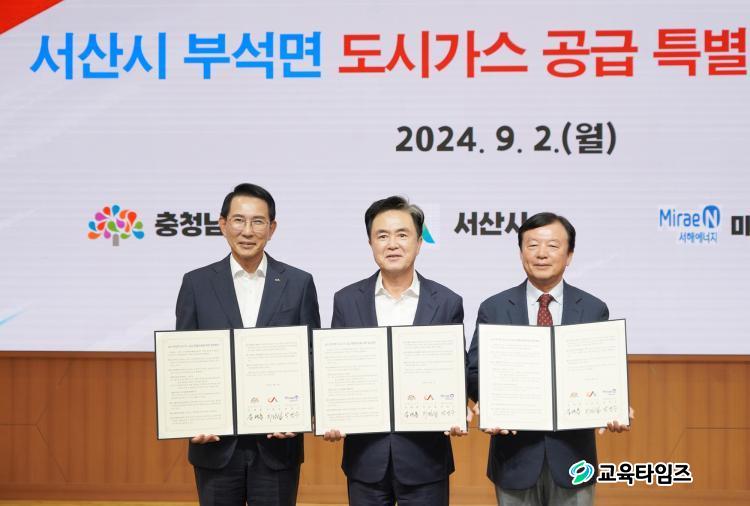 Ãæ³²µµÃ»¿¡¼ 2ÀÏ ¿¸° ¼Ò¿ÜÁö¿ª µµ½Ã°¡½º °ø±Þ Ưº°Áö¿ø ¾÷¹«Çù¾à½Ä(¿ÞÂʺÎÅÍ À̿ϼ· ¼»ê½ÃÀå, ±èÅÂÈì Ãæ³²µµÁö»ç, ¹Ú¿µ¼ö ¹Ì·¡¿£¼ÇØ¿¡³ÊÁö ´ëÇ¥) /»çÁøÁ¦°ø=¼»ê½Ã
