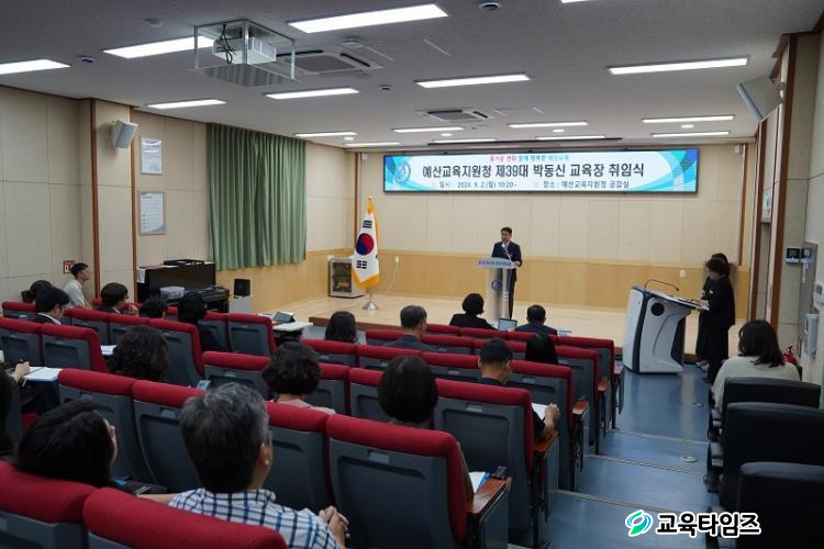 [±³À°Å¸ÀÓÁî/Ãæ³²±³À°] °¡µÎÈ£ ±âÀÚ = ¿¹»ê±³À°Áö¿øÃ»Àº 2ÀÏ º°°ü 3Ãþ °ø°¨½Ç¿¡¼ ¹Úµ¿½Å ½ÅÀÓ ±³À°ÀåÀÇ ÃëÀÓ½ÄÀ» °³ÃÖÇß´Ù°í ¹àÇû´Ù. ¹Úµ¿½Å ±³À°ÀåÀº 2ÀÏ ÃæÀÇ»ç¿Í Ãæ·É»ç¸¦ ã¾Æ ÇåÈ¿Í Âü¹è¸¦ ÇÑ ÈÄ ÃëÀÓ½ÄÀ» °®°í °ø½Ä ¾÷¹«¸¦ ½ÃÀÛÇß´Ù.