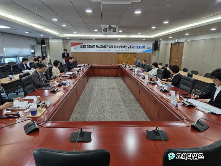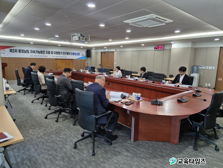 [±³À°Å¸ÀÓÁî/Ãæ³²] °¡µÎÈ£ ±âÀÚ = Ãæ³²µµ´Â 4ÀÏ µµÃ» ÁßȸÀǽǿ¡¼ °øµ¿À§¿øÀåÀ» ¸Ã°í ÀÖ´Â ÀÌ¿µ½Å ÇѼ´ë ±³¼ö¸¦ ºñ·ÔÇÑ Á¦3±â Áö¼Ó°¡´É¹ßÀüÀ§¿ø, µµ °ü°è °ø¹«¿ø µîÀÌ Âü¿©ÇÑ °¡¿îµ¥, ¡®Á¦3Â÷ Áö¼Ó°¡´É¹ßÀü ÁöÇ¥ ¹× ÀÌÇàÆò°¡ ¿¬±¸¿ë¿ª ÃÖÁ¾º¸°íȸ¡¯¸¦ °³ÃÖÇß´Ù.
