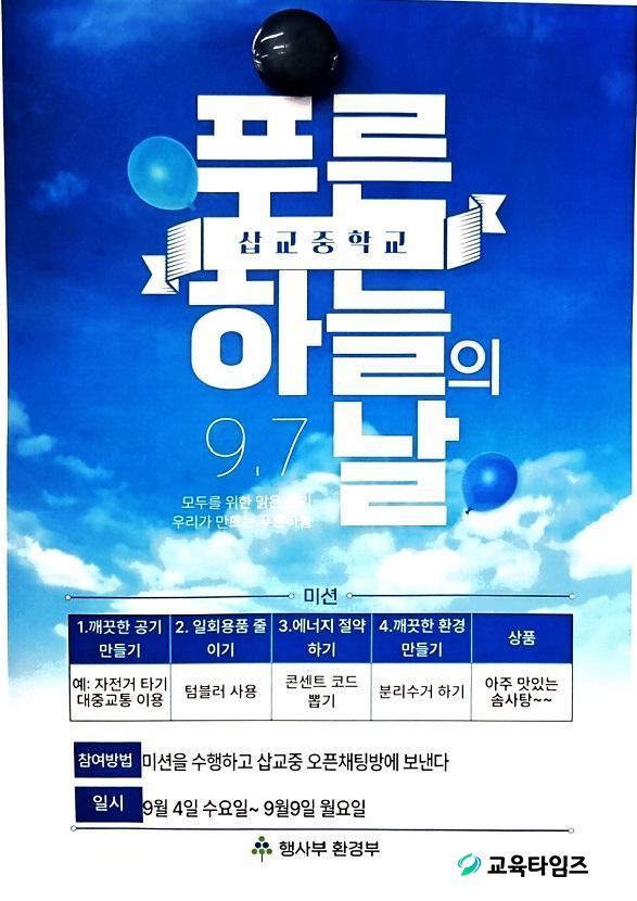 [±³À°Å¸ÀÓÁî/Ãæ³²±³À°] °¡µÎÈ£ ±âÀÚ = ¿¹»ê »ð±³ÁßÇб³(±³Àå ±èÀ±¼÷)Àº Áö³ 3ÀϺÎÅÍ 9ÀϱîÁö ÇлýÀÚġȸ¿¡¼ Àü±³»ýÀ» ´ë»óÀ¸·Î 'Ǫ¸¥ ÇÏ´ÃÀÇ ³¯'À» ¿î¿µÇÑ´Ù°í ¹àÇû´Ù.