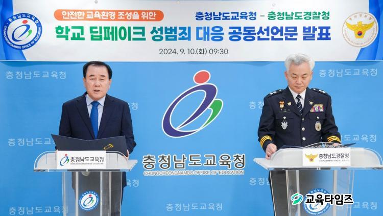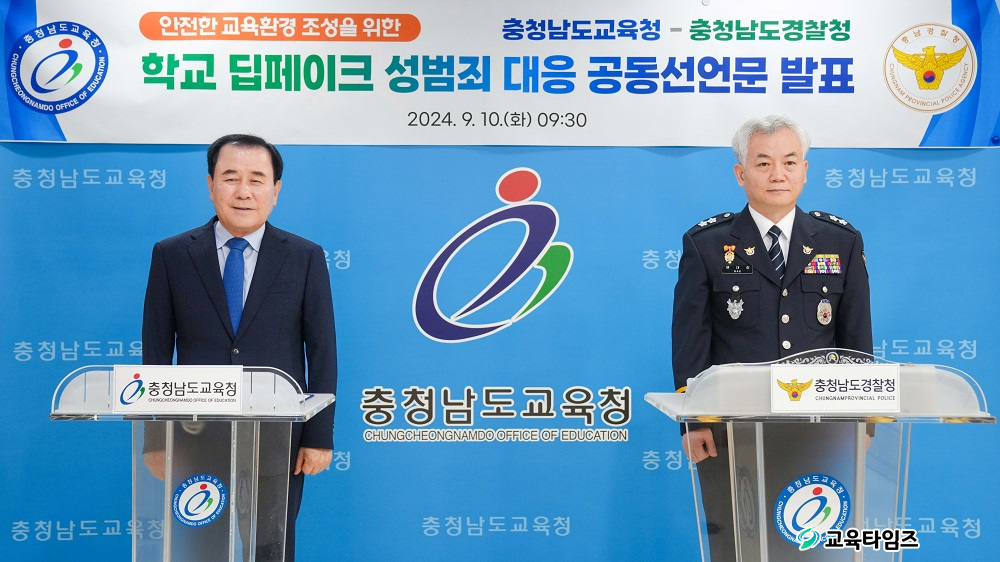 ÃæÃ»³²µµ±³À°Ã»Àº ÃæÃ»³²µµ°æÂûû°ú ÇÔ²² Çб³ µöÆäÀÌÅ© ¼º¹üÁË ±ÙÀýÀ» À§ÇÑ ¡®Çб³ µöÆäÀÌÅ© ¼º¹üÁË °øµ¿¼±¾ð¹®¡¯À» ¹ßÇ¥Çß´Ù.(»çÁø ÁÂÃø ÃæÃ»³²µµ±³À°Ã» ±èÁöö ±³À°°¨, ¿ìÃø ÃæÃ»³²µµ°æÂûû ¹è´ëÈñ ûÀå) /»çÁø=Ãæ³²±³À°Ã» Á¦°ø