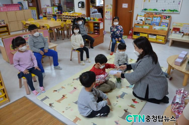 Çкθð´Ôµé°ú Çлýµé¿¡°Ô ÈûÀ» ÁÙ ¼ö ÀÖµµ·Ï ÁغñÇÑ Ã¹ ¹øÂ° ¼±¹°Àº ÇлýµéÀÇ ¿Â¶óÀÎ °³ÇÐÀ» °í·ÁÇÏ¿© ÀüÀÚÆÄ Â÷´Ü¿¡ µµ¿òÀÌ µÇ´Â ´ÙÀ° ½Ä¹°À» ÁغñÇß°í, µÎ ¹øÂ° ¼±¹°Àº Àë¼³±â¿Í °æ´ÜÀ» Æ÷ÀåÇÏ¿© ºÎ¸ð´Ô°ú ÇÔ²² ¸Ô°í ÈûÀ» ³¾ ¼ö ÀÖµµ·Ï Àü´ÞÇß´Ù. ¼¼ ¹øÂ° ¼±¹°·Î ´Üü Ƽ¼ÅÃ÷¸¦ ÁغñÇÏ¿´À¸¸ç, ³¡À¸·Î ³«µ¿ÃʵîÇб³ µ¿Ã¢È¸¿¡¼ ÁغñÇÑ º»±³ Ư»ö±³À°ÀÎ Àü±³»ý ¿¹´ÉÁöµµ¸¦ À§ÇÑ ¹ÙÀ̿ø°À» ¼±¹°Çß´Ù.