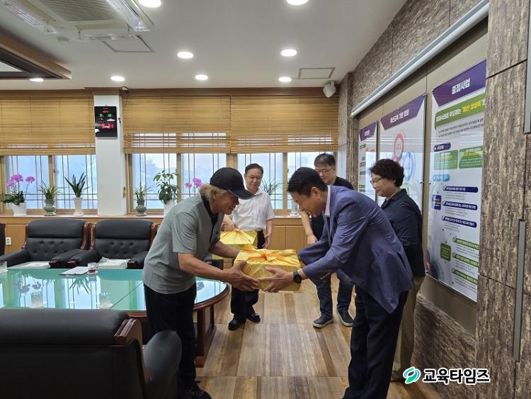 [±³À°Å¸ÀÓÁî/Ãæ³²±³À°] °¡µÎÈ£ ±âÀÚ = ¿¹»ê±³À°Áö¿øÃ»(±³À°Àå ¹Úµ¿½Å)Àº 12ÀÏ Ãß¼® ¸íÀýÀ» ¸Â¾Æ ±³À°±â°üÀÇ Ã»°á°ú ¾ÈÀüÀ» À§ÇØ Èû½áÁֽô û¼Ò¿ø ¹× ´çÁ÷Àڵ鿡°Ô µû¶æÇÑ ¸¶À½°ú °¨»çÀÇ ¶æÀ» ´ã¾Æ Áö¿ª Ư»ê¹°ÀΠǥ°í¹ö¼¸À» ¼±¹°·Î Àü´ÞÇß´Ù.