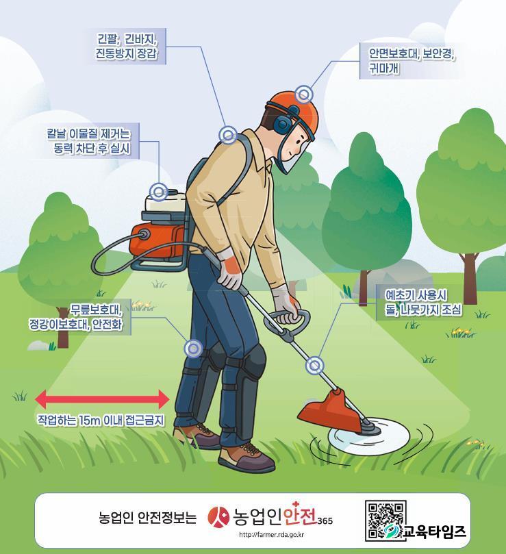 ¿¹Ãʱ⸦ ¾ÈÀüÇÏ°Ô »ç¿ëÇϱâ À§Çؼ± ÀÛ¾÷ Àü¿¡ Á¤Áö ¹æ¹ýÀ» ¼÷ÁöÇϰí ÀûÀýÇÑ º¹Àå ¹× º¸È£±¸(Çï¸ä, Àå°©, ¾ÈÀüÈ, º¸È£¾È°æ ¶Ç´Â ¾È¸éº¸È£±¸, ±Í¸¶°³, Á¤°ÀÌ º¸È£´ë µî)¸¦ Âø¿ëÇØ¾ß Çϸç, »ç¿ë Àü ¿¹Ãʱâ Á¡°Ë ¹× Á¤ºñ, ÀÛ¾÷ ÇöÀåÀÇ µ¹¸æÀÌ¡¤À¯¸®º´¡¤±øÅë µî À§Çè ¿ä¼Ò Á¦°Å µîÀ» ÁøÇàÇØ¾ß ÇÑ´Ù.