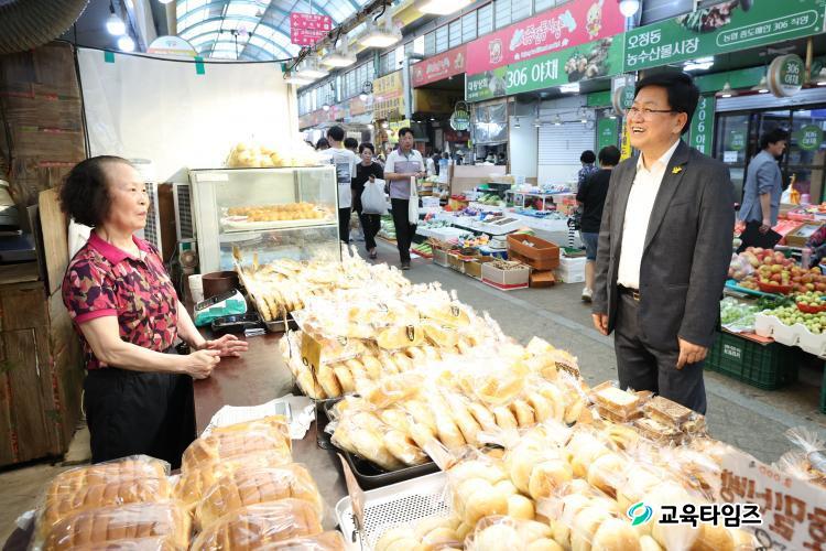 Çà»ç¿¡ Âü¿©ÇÑ ÇÑ ±³À°Ã» Á÷¿øÀº ¡°°æ±â ħü·Î Èûµç ½Ã±â¸¦ °Þ°í ÀÖ´Â ÀüÅë ½ÃÀåÀÇ »óÀε鲲 Á¶±ÝÀ̳ª¸¶ ÈûÀ» º¸Å°íÀÚ ÀÌ ÀÚ¸®¿¡ ÇÔ²²Çß´Ù.¡±¶ó¸ç,¡°Á÷Á¢ ÀåÀ» º¸¸ç »óÀκеéÀÇ ³ë°í¸¦ ´Ù½Ã±Ý ±íÀÌ ´À²¼À¸¸ç, ¾ÕÀ¸·Îµµ °¡Á·°ú ÇÔ²² ÀüÅë ½ÃÀåÀ» ÀÚÁÖ ¹æ¹®ÇÏ¿© Áö¿ª °æÁ¦¿¡ ÀÛÀº º¸ÅÆÀÌ µÇµµ·Ï ³ë·ÂÇϰڴÙ.¡±¶ó°í ¸»Çß´Ù.