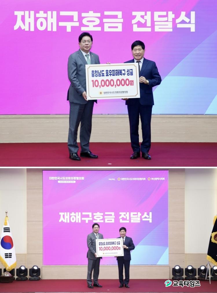 Àü±¹½ÃµµÀÇȸÀÇÀåÇùÀÇȸ, Ãæ³²µµÀÇȸ¿¡ È£¿ìÇÇÇØº¹±¸ ¼º±Ý Áö¿ø(¿À¸¥ÂÊ È«¼ºÇö Ãæ³²µµÀÇȸ ÀÇÀå) /»çÁø=Ãæ³²µµÀÇȸ Á¦°ø