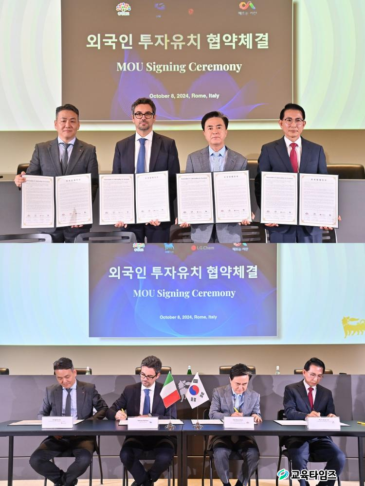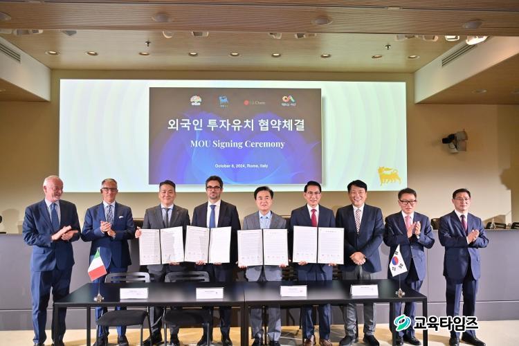 ±èÅÂÈì Ãæ³²µµÁö»ç´Â 8ÀÏ(ÇöÁö½Ã°¢) ÀÌÅ»¸®¾Æ ·Î¸¶¿¡¼ ½ºÅ×ÆÄ³ë ¹ß¸®½ºÅ¸ ¿¡´Ï ¶óÀ̺ê CEO, ÀÌÁ¾È£ LGÈÇÐ À¯·´¹ýÀÎ ´ëÇ¥, À̿ϼ· ¼»ê½ÃÀå°ú ÅõÀÚÇù¾à(MOU)À» ü°áÇß´Ù. /»çÁø=Ãæ³²µµ Á¦°ø