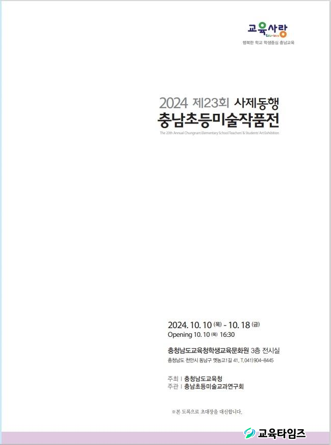 [±³À°Å¸ÀÓÁî/Ãæ³²±³À°] °¡µÎÈ£ ±âÀÚ = Ãæ³²±³À°Ã»(±³À°°¨ ±èÁöö)Àº 10¿ù 10ÀÏ(¸ñ)ºÎÅÍ 18ÀÏ(±Ý)±îÁö Ãæ³²±³À°Ã»Çлý±³À°¹®È¿ø¿¡¼ ¡®2024 Á¦23ȸ »çÁ¦µ¿Çà Ãæ³²Ãʵî¹Ì¼úÀÛǰÀü¡¯À» °³ÃÖÇÑ´Ù°í ¹àÇû´Ù.