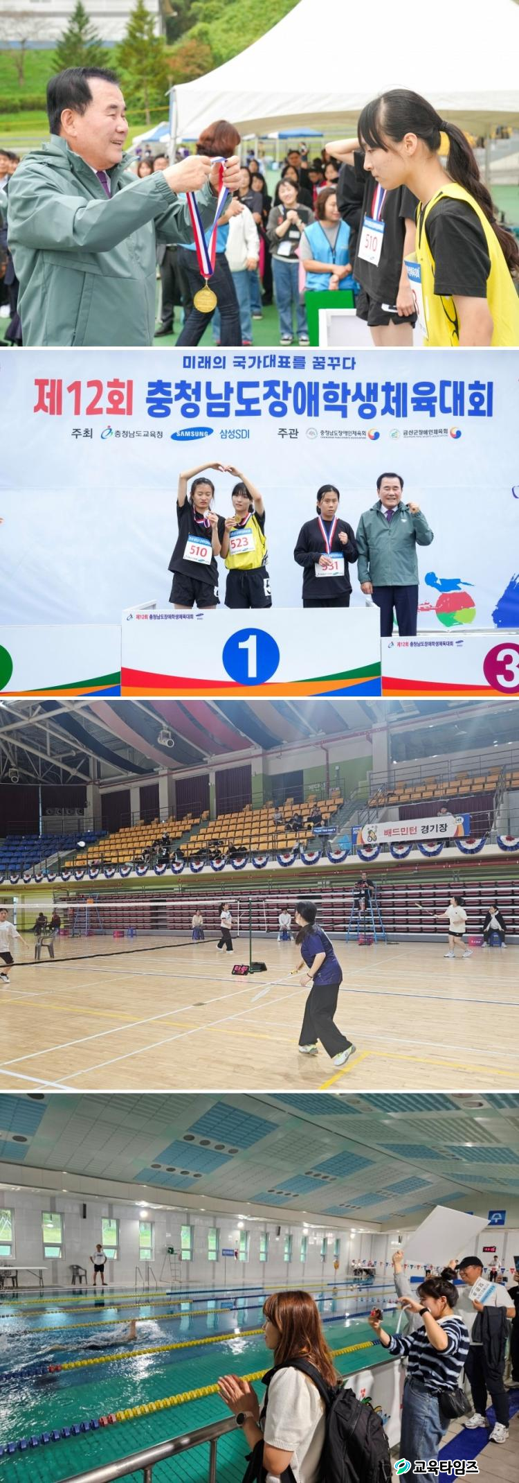 | 1¡¤2.´ëȸ¿¡ ÀÔ»óÇÑ Çлý¼±¼ö ¸Þ´Þ ¼ö¿© ¹× ½Ã»ó½Ä 3.Á¦12ȸ ÃæÃ»³²µµÀå¾ÖÇлýüÀ°´ëȸ ¹èµå¹ÎÅÏ Á¾¸ñ 4.Á¦12ȸ ÃæÃ»³²µµÀå¾ÖÇлýüÀ°´ëȸ ¼ö¿µ Á¾¸ñ /»çÁø=Ãæ³²±³À°Ã» Á¦°ø |