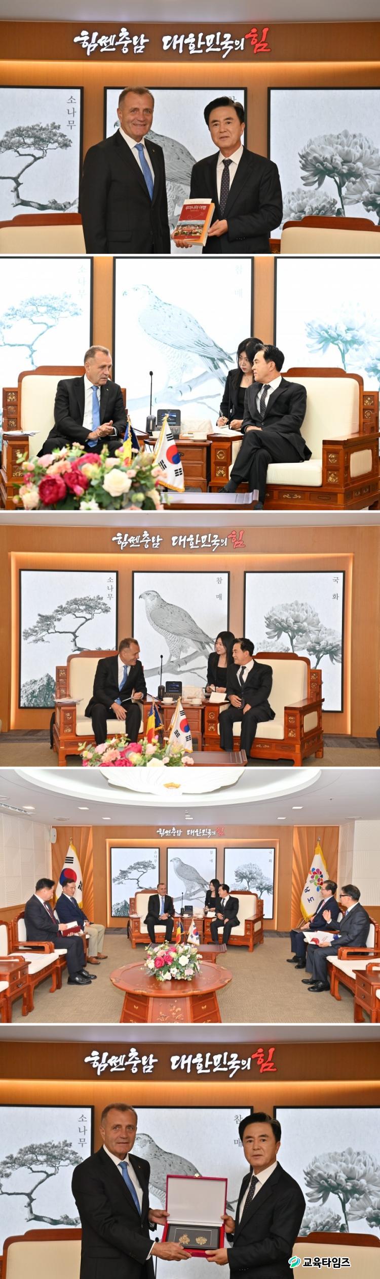 ÀÌ ÀÚ¸®¿¡¼ ±è Áö»ç´Â ¸ÕÀú µµ¿Í ·ç¸¶´Ï¾ÆÀÇ µçµçÇÑ °¡±³°¡ µÅ ÁÖ´Â ¾Æ¸£¸Þ¾Æ´© ´ë»ç¿¡ °¨»ç¸¦ ÀüÇÏ°í ¡°³»³âºÎÅÍ Ãæ³² ¹æ¹®ÀÇ ÇØ°¡ ½ÃÀ۵Ǵµ¥, ÁÖÇÑ ·ç¸¶´Ï¾Æ´ë»ç°üÀÇ Àû±ØÀûÀÎ È«º¸·Î ¸¹Àº ·ç¸¶´Ï¾Æ ¹æ¹®°´ÀÌ Ãæ³²ÀÇ ¸Å·ÂÀ» °æÇèÇÏ½Ã±æ ¹Ù¶õ´Ù¡±¶ó°í °Á¶Çß´Ù. ÀÌ¾î ±è Áö»ç´Â ¡°¹®È°ü±¤Àº ¾ç±¹ÀÇ ±³·ù¡¤Çù·ÂÀ» °¡¼ÓÈÇÏ´Â °¡Àå ºü¸¥ ±æ¡±À̶ó¸ç ¡°À̸¦ ÅëÇØ ¾ç±¹ÀÇ ÀÎÀû ±³·ù°¡ Ȱ¹ßÇØÁö°í ¾ç±¹ ±¹¹ÎÀÌ ¼·Î ¿ìÁ¤°ú ½Å·Ú¸¦ ½×±æ ¹Ù¶õ´Ù¡±¶ó°í ¸»Çß´Ù.