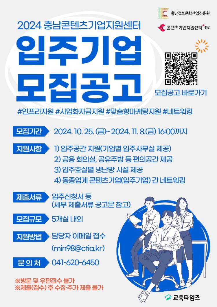 [±³À°Å¸ÀÓÁî/»çȸ] °¡µÎÈ£ ±âÀÚ = Ãæ³²Á¤º¸¹®È»ê¾÷ÁøÈï¿ø(¿øÀå ±è°î¹Ì, ÀÌÇÏ ÁøÈï¿ø)ÀÌ µµ³» ÄÜÅÙÃ÷ »ê¾÷ Ȱ¼ºÈ ¹× ÄÜÅÙÃ÷±â¾÷ Á¤Âø±â¹Ý ¸¶·ÃÀ» À§ÇØ Ãæ³²ÄÜÅÙÃ÷±â¾÷Áö¿ø¼¾ÅÍ(ÀÌÇÏ Áö¿ø¼¾ÅÍ) ½Å±Ô ÀÔÁÖ±â¾÷À» ¸ðÁýÇÑ´Ù.