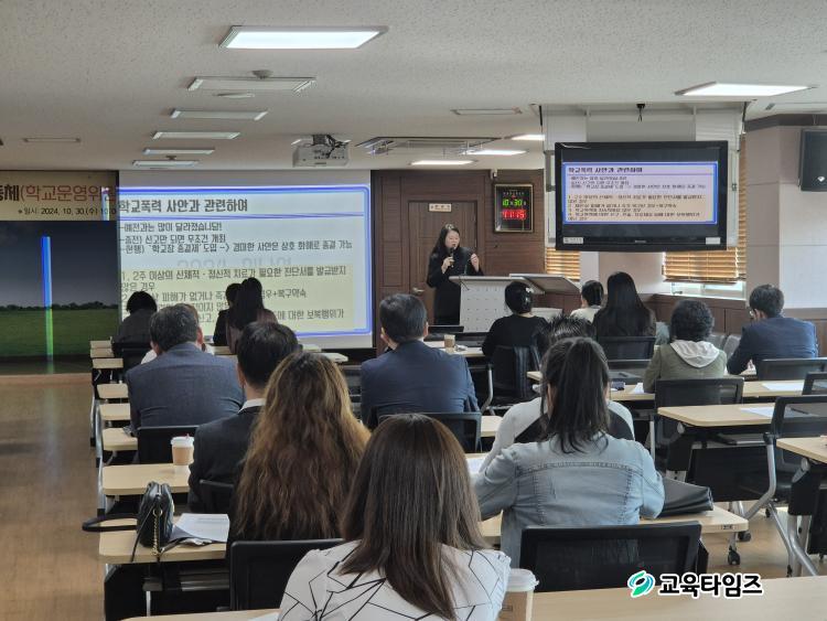 ¿¬¼ö¿¡ Âü¼®ÇÑ Çб³¿î¿µÀ§¿øÀåÀº "±³±Ç º¸È£ »ç¾ÈÀÌ ¹ß»ýµÇ¾úÀ» ¶§ ´ëÀÀ ¹æ¹ýÀ» ÀÌÇØÇÒ ¼ö ÀÖ¾ú°í, ±³±Ç Ä§ÇØ »ç¾ÈÀÌ ¹ß»ýÇÏÁö ¾Êµµ·Ï Çлý, Çкθð, ±³»ç°¡ ÇÔ²² ¼ÒÅëÇϰí Çù·ÂÇÏ´Â°Ô Áß¿äÇÏ´Ù´Â °ÍÀ» ±ú´Ý´Â ÀÇ¹Ì ÀÖ´Â ½Ã°£À̾ú´Ù"¶ó°í ¸»Çß´Ù.