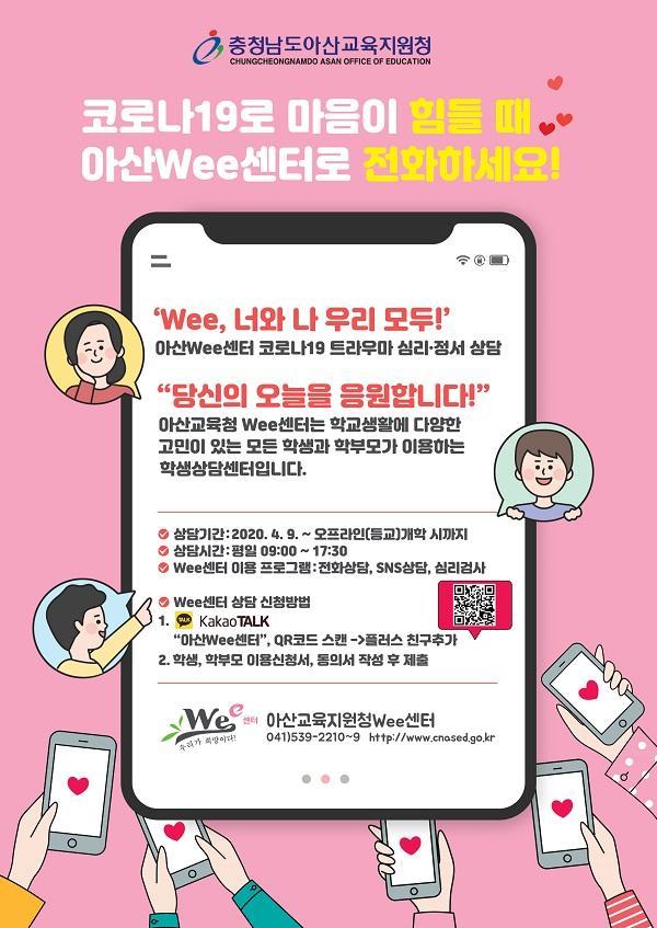 [ÃæÃ»±³À°½Å¹® = Á¶¼ºÂù ±âÀÚ] ¾Æ»ê±³À°Áö¿øÃ»(±³À°Àå Á¶±â¼º)Wee¼¾ÅÍ´Â »çȸÀû °Å¸®µÎ±âÀÇ ÀÏȯÀ¸·Î ÃæÃ»µµ³» Çб³ÀÇ ¿Â¶óÀÎ °³ÇÐÀÌ È®´ëµÊ¿¡ µû¶ó Äڷγª19 °ü·Ã Æ®¶ó¿ì¸¶¸¦ °Þ°í ÀÖ´Â ÇлýµéÀÇ ½É¸®Àû ºÒ¾ÈÀ» ÇØ¼ÒÇϱâ À§ÇØ ½É¸®¡¤Á¤¼Áö¿ø ÇÁ·Î±×·¥À» ½Ç½ÃÇϰí ÀÖ´Ù.