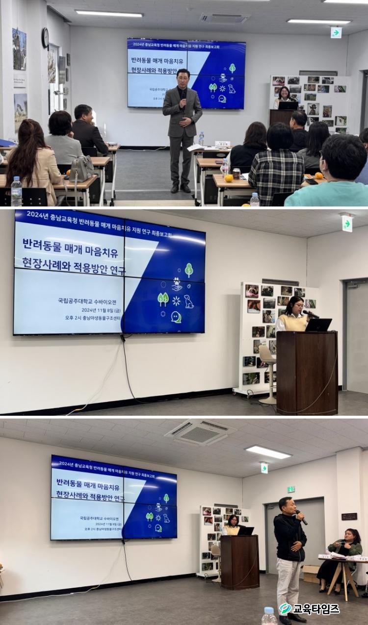[±³À°Å¸ÀÓÁî/Ãæ³²±³À°] °¡µÎÈ£ ±âÀÚ = Ãæ³²±³À°Ã»(±³À°°¨ ±èÁöö)Àº 11¿ù 8ÀÏ(±Ý) °øÁÖ´ëÇб³ ¿¹»êÄ·ÆÛ½º¿¡¼ Ãæ³²Çü ¹Ý·Áµ¿¹° ¸Å°³Ä¡À¯ Á¤Ã¥¿¬±¸ ÃÖÁ¾¹ßǥȸ¸¦ °³ÃÖÇß´Ù. À̹ø ¹ßǥȸ´Â ¹Ý·Áµ¿¹°À» ÅëÇÑ Çлý ¸ÂÃãÇü Ä¡À¯ ÇÁ·Î±×·¥ÀÌ Á¤¼Àû À§±â¸¦ °Þ´Â ÇлýµéÀÇ ½É¸®¡¤Á¤¼ Áö¿ø¿¡ ¾î¶² È¿°ú¸¦ ¹ÌÄ¥ ¼ö ÀÖ´ÂÁö¸¦ ºÐ¼®Çϰí, Çб³ ÇöÀå¿¡ Àû¿ëÇÒ ¼ö ÀÖ´Â ½ÇÁúÀû ¹æ¾ÈÀ» ³íÀÇÇÏ´Â ÀÚ¸®·Î ¸¶·ÃµÇ¾ú´Ù.