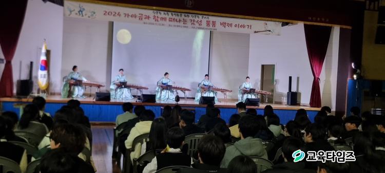 [±³À°Å¸ÀÓÁî/Ãæ³²±³À°] ÇѼºÁø ±âÀÚ = ¼»ê±³À°Áö¿øÃ»(±³À°Àå ¼º±âµ¿)¿¡¼´Â ÇлýµéÀÇ Àι® ¼Ò¾ç ¿ª·® Á¦°í¸¦ ÅëÇÑ ¹®ÇØ·Â Çâ»óÀ» À§ÇØ 2024 ã¾Æ°¡´Â Àι®ÇÐ ÄܼƮ¸¦ ´ë»êÁßÇб³ Çлý°ú ±³Á÷¿ø200¿©¸íÀÌ ÇÔ²²ÇÑ °¡¿îµ¥ Áö³ 12ÀÏ ´ë»êÁßÇб³ üÀ°°ü¿¡¼ '°¡¾ß±Ý°ú ÇÔ²² ¶°³ª´Â °¨¼º»Õ»Õ ¹éÁ¦À̾߱â' ¶ó´Â ÁÖÁ¦·Î ½Ç½ÃÇß´Ù.