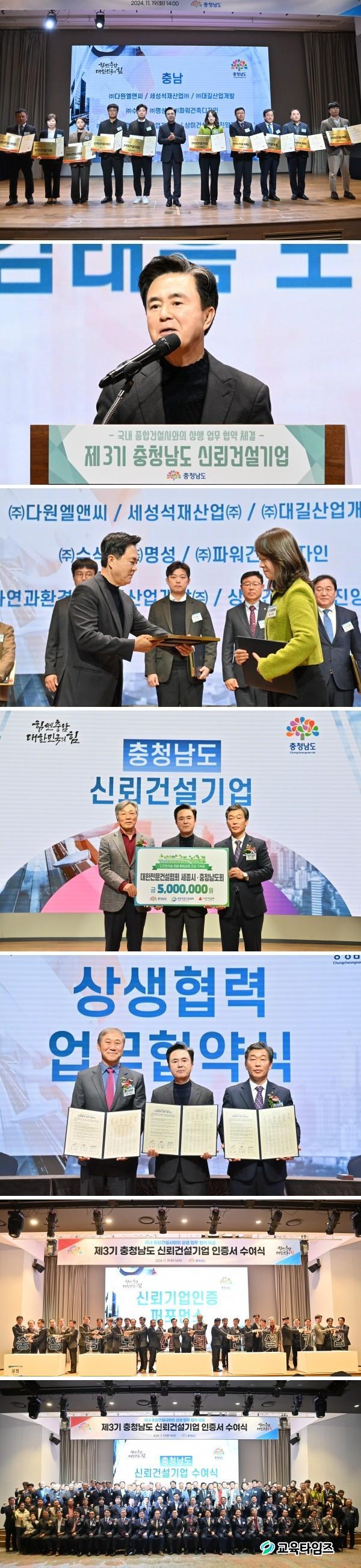 [±³À°Å¸ÀÓÁî/Ãæ³²] °¡µÎÈ£ ±âÀÚ = Ãæ³²µµ´Â 19ÀÏ ¿¹»ê ½ºÇÃ¶ó½º ¸®¼Ø¿¡¼ ¡®Á¦3±â ÃæÃ»³²µµ ½Å·Ú°Ç¼³±â¾÷ ÀÎÁõ¼ ¼ö¿©½Ä¡¯À» ¿°í, µµ ½Å·Ú°Ç¼³±â¾÷¡¤´ëÇü Á¾ÇÕ °Ç¼³»ç¿Í »ó»ý Çù·«À» ü°áÇß´Ù.