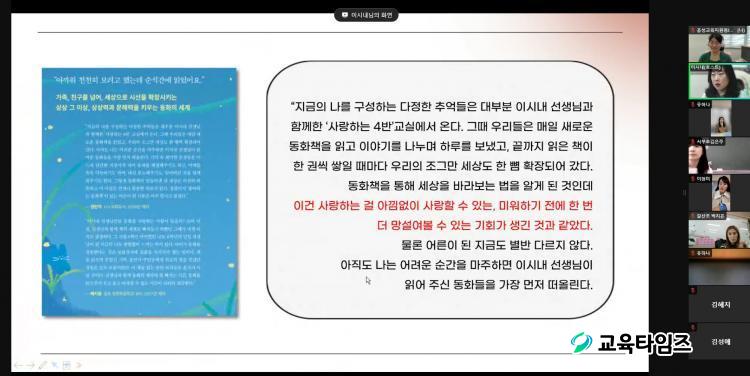 ¿¬¼ö¿¡ Âü¼®ÇÑ ÇÑ ±³»ç´Â "´Ü¼øÈ÷ Ã¥À» Àаí À̾߱⸦ ³ª´©°í ³¡³ª´Â °ÍÀÌ ¾Æ´Ï¶ó »çȸ ¹®Á¦¿¡ ´ëÇØ »ý°¢ÇÏ°í ¾î¶»°Ô ÇÏ¸é »çȸ¸¦ ¹Ù²Ü ¼ö ÀÖ´ÂÁöµµ ÇÔ²² °í¹ÎÇÒ ¼ö ÀÖ¾ú´Ù. ¿ì¸® ¹Ý ¾ÆÀ̵é°úµµ Ã¥À» ÀÐ°í »çȸ ¹®Á¦¸¦ °í¹ÎÇÒ ½Ã°£ÀÌ ±â´ëµÈ´Ù"°í ¸»Çß´Ù.