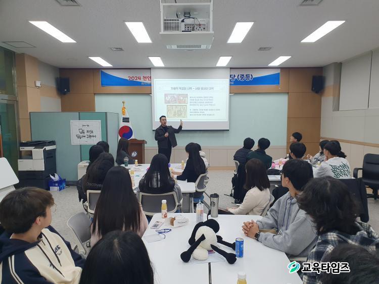 [±³À°Å¸ÀÓÁî/Ãæ³²±³À°] ¿ÀÁ¤ÀÏ ±âÀÚ = ÃæÃ»³²µµÃµ¾È±³À°Áö¿øÃ»(±³À°Àå À̺´µµ) ±³À°Çõ½Å¼¾ÅÍ´Â 11¿ù 23ÀÏ(Åä) °ü³» Çõ½ÅÇб³¿Í Çõ½Åµ¿ÇàÇб³ ÇлýÀ» ´ë»óÀ¸·Î ¡®Ãµ¾È Çõ½Å(µ¿Çà)Çб³ Çлý À̾߱â ÇѸ¶´ç¡¯À» °³ÃÖÇß´Ù. ¿ÃÇØ·Î 3ȸ°ÀÎ ¡®Ãµ¾È Çõ½Å(µ¿Çà)Çб³ Çлý À̾߱â ÇѸ¶´ç¡¯Àº ¡®Çõ½ÅÇб³ Åë(÷×)ÇÏ´Ù¡¯ ÁÖÁ¦·Î ¼ÒÅëÇÏ¸ç ¼ºÀåÇÏ´Â ÇູÇÑ Çõ½Å(µ¿Çà)Çб³¸¦ ±¸ÇöÇϰíÀÚ ÇÑ´Ù.