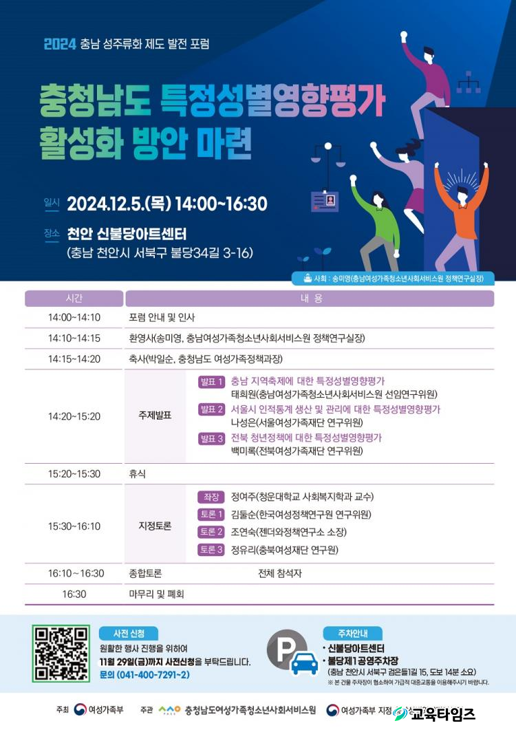 [±³À°Å¸ÀÓÁî/»çȸ] °¡µÎÈ£ ±âÀÚ = ÃæÃ»³²µµ¿©¼º°¡Á·Ã»¼Ò³â»çȸ¼ºñ½º¿ø(¿øÀå Á¶°æÈÆ)Àº 12¿ù 5ÀÏ(¸ñ) ¿ÀÈÄ 2½Ã õ¾È ½ÅºÒ´ç¾ÆÆ®¼¾ÅÍ¿¡¼ ¡®2024³â Ãæ³² ¼ºÁÖ·ùÈ Á¦µµ ¹ßÀü Æ÷·³¡¯À» °³ÃÖÇÑ´Ù°í ¹àÇû´Ù. ¼ºº°¿µÇâÆò°¡ Æ÷·³Àº ÇØ¸¶´Ù Ãæ³²ÀÇ ¼ºÁÖ·ùÈ Á¦µµÀÇ ¹ßÀü¿¡ ´ëÇØ ³íÀÇÇÏ´Â ÀÚ¸®·Î½á, ¿ÃÇØ´Â ƯÁ¤¼ºº°¿µÇâÆò°¡ Ȱ¼ºÈ ¹æ¾È ¸¶·ÃÀ» ÁÖÁ¦·Î ÁøÇàÇÑ´Ù.