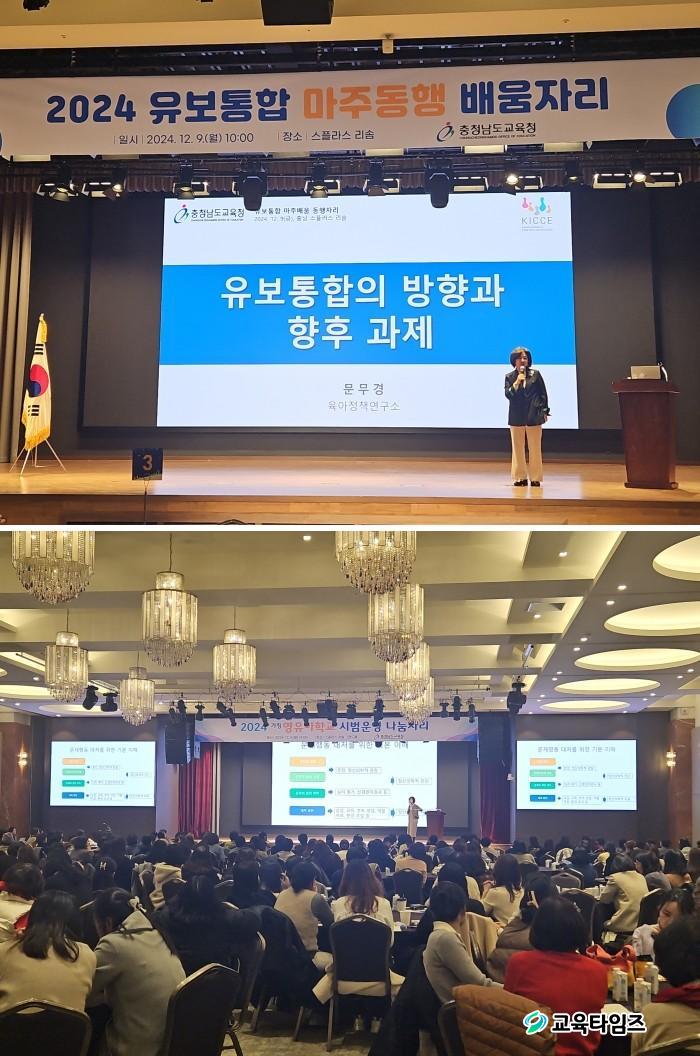 ¡®À¯º¸ÅëÇÕ ¸¶ÁÖµ¿Çà ¹è¿òÀÚ¸®¡¯´Â À¯Ä¡¿ø°ú ¾î¸°ÀÌÁý °ü¸®ÀÚ, À¯¾Æ±³À° Àü¹®Á÷¿ø, Ãæ³²µµÃ» °ü°èÀÚ, À°¾ÆÁ¾ÇÕÁö¿ø¼¾ÅÍÀå µîÀÌ ÇÑÀÚ¸®¿¡ ¸ð¿© À¯º¸ÅëÇÕ Á¤Ã¥¿¡ ´ëÇÑ ÀÌÇØ¸¦ ³ôÀ̰í, ±³À°¡¤º¸À°±â°ü °£ ¼ÒÅëÀ» ÃËÁøÇϱâ À§ÇØ Ã³À½À¸·Î ¸¶·ÃµÈ ÀÚ¸®¿´´Ù. Âü¼®ÀÚµéÀº À¯º¸ÅëÇÕ Á¤Ã¥ÀÌ °¡Á®¿Ã º¯È¿Í ±×¿¡ µû¸¥ ¿î¿µ ¹æ¾ÈÀ» ³íÀÇÇÏ¸ç ¼·ÎÀÇ ÀǰßÀ» °øÀ¯Çß´Ù.