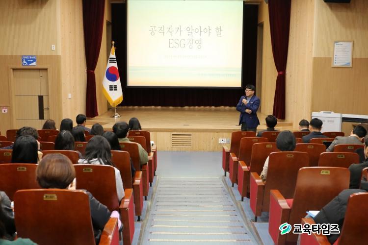 [±³À°Å¸ÀÓÁî/Ãæ³²±³À°] °¡µÎÈ£ ±âÀÚ = ´çÁø±³À°Áö¿øÃ»(±³À°Àå ¼ÛÇÏÁ¾)Àº Áö³ 9ÀÏ, Àü Á÷¿øÀ» ´ë»óÀ¸·Î ESG °æ¿µ ¿ª·® °È ¹è¿òÀÚ¸®¸¦ °³ÃÖÇß´Ù. Àü³²±³À°Ã» ESGÁö¿ø¼¾ÅÍ À̼ ÁÖ¹«°üÀ» °»ç·Î ÃÊûÇÏ¿© 'ESG¶õ ¹«¾ùÀΰ¡?', 'ESG°æ¿µÀº ¿Ö ÇÊ¿äÇѰ¡?', '½Ç¹«ÀÚ°¡ ¾Ë¾Æ¾ß ÇÒ ESG°æ¿µÀÇ ±âº» ¿øÄ¢', 'ŸÁö¿ªÀÇ ¿ì¼ö »ç·Ê' µî¿¡ ´ëÇØ °ÀǸ¦ µè°í ÁúÀÇÀÀ´äÀ» ÇÏ´Â ½Ã°£À» °¡Á³´Ù.