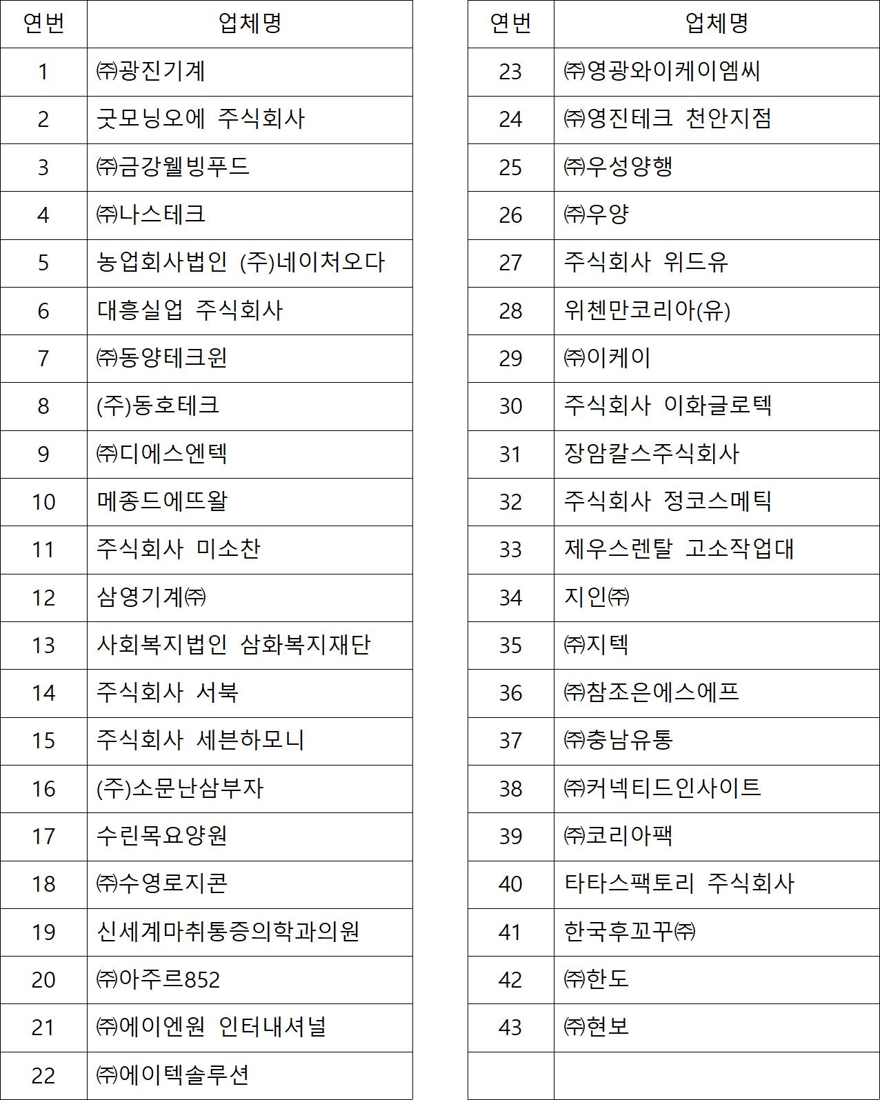 | 'Àϰ¡Á¤ ¾ç¸³ À§ÇÏ Ãâ»ê¡¤À°¾Æ ¿ì¼ö±â¾÷' ¼±Á¤ °á°ú /ÀÚ·á=Ãæ³²µµ Á¦°ø |