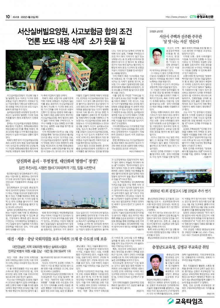 À̹ø ¹ßÇàµÈ CTNÃæÃ»±³À°½Å¹®¿¡´Â ±³À°Á¤Ã¥Àº ¹°·Ð Áö³ 4¿ù 15ÀÏ Ä¡·¯Áø Á¦21´ë ±¹È¸ÀÇ¿øÃæÃ»±Ç ´ç¼±ÀÚ ÇöȲ°ú ¼»ê½Ç¹öºô¿ä¾ç¿øÀÇ ÀÔ¼ÒÀÚ »ç°íº¸Çè±Ý ÇÕÀÇ Á¶°ÇÀ¸·Î ÀÚ½ÅÀÇ À߸øÀ» ÁöÀûÇÑ ¾ð·Ðº¸µµ ³»¿ë »èÁ¦ Á¶°ÇÀ» ³»¼¼¿ì°í ÀÖ´Â ¹®Á¦Á¡, žÈȷ¹ßÀü¼ÒÀÇ Â«Â«ÀÌ °æ¿µ¿¡ ´ëÇÑ ÁöÀû, ÃæÃ»±Ç ±¹È¸ÀÇ¿ø º¸À¯ ¾ÆÆÄÆ® 21ä Áß ¼öµµ±Ç 8ä º¸À¯ ¼Ò½Ä, ¼»ê½Ã Ä£Àý°ø¹«¿ø ¼Ò½ÄÀ» ´ã¾Ò´Ù.